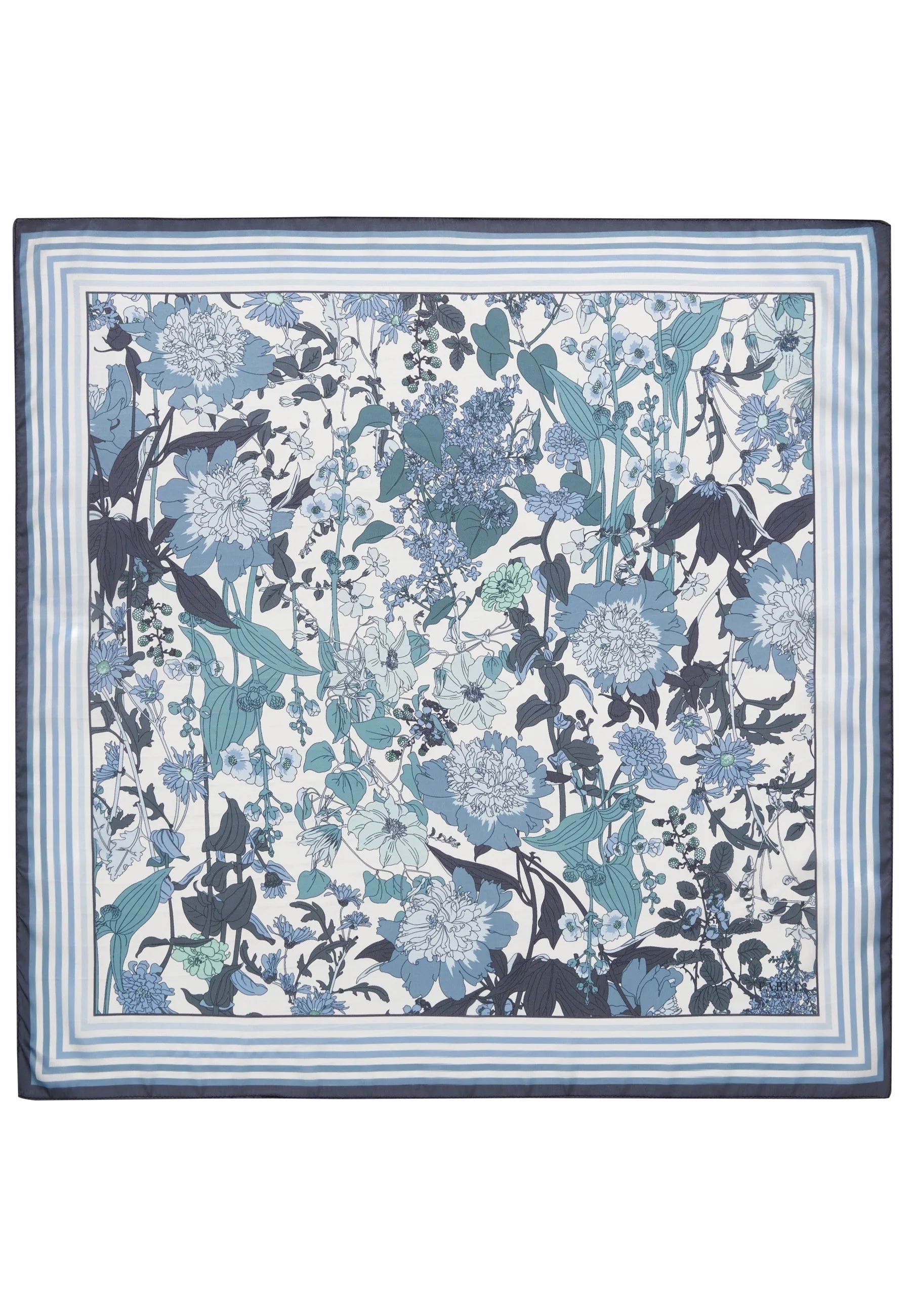 This exquisite silk scarf features an abstract artistic pattern in beautiful blues and golds. Premium qualities include: